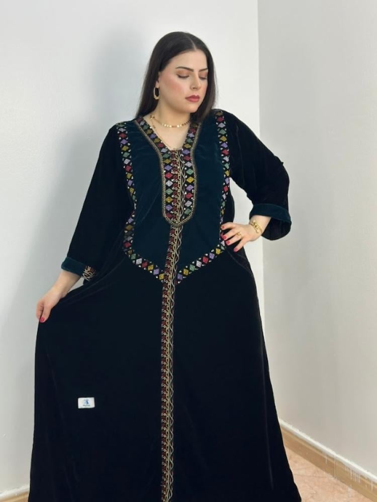 - جلابية مخمل زيتي تصميم عصري يجمع بين الأناقة والتقاليد، مما يجعلها خيارًا مثاليًا لكل امرأة عصرية.
